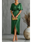 בגדי ריקוד נשים שמלת מידי שמלה בגזרה ישרה שמלה עם כיווץ במותן אלגנטית יומי חופשה אורחת חתונה רגיל צבע אחיד שרוול 4\3 צווארון V ירוק אזמרגד