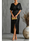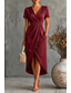 בגדי ריקוד נשים שמלת מקסי שמלת מעטפת שמלה עם כיווץ במותן אלגנטית רשמי אורחת חתונה מסיבת קוקטייל רגיל אחיד שרוולים קצרים צווארון V יין קיץ