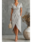 בגדי ריקוד נשים שמלת מידי שמלה עם כיווץ במותן אלגנטית יומי אורחת חתונה פגישה (דייט) צבע אחיד שרוולים קצרים צווארון V לוונדר