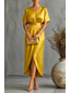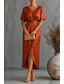 בגדי ריקוד נשים שמלת מקסי שמלה בגזרה ישרה אלגנטית צבע אחיד שרוולים קצרים צווארון V חום