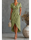בגדי ריקוד נשים שמלת מיני שמלת שיפט אלגנטית צבע אחיד שרוולים קצרים צווארון עגול קצר גרין פצלי