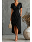 בגדי ריקוד נשים שמלת מקסי שמלה עם כיווץ במותן אלגנטית יומי אורחת חתונה מסיבת תה צבע אחיד שרוול 4\3 צווארון V שחור
