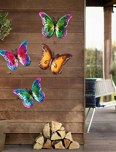 1 pc פרפר מתכת קיר עיצוב לגינה עיצוב פטיו עיצוב חדר קישוט מסיבה קישוט קיר אמנות עיצוב פטיו עיצוב, עיצוב גינה חיצונית עיצוב חנוכת בית פסלי קיר מתנה 13x16.5cm/5''x6.5''