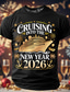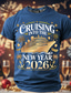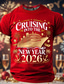 ראש השנה בגדי ריקוד גברים שנה טובה זיקוקין ספינת שייט חולצה קצרה שרוולים קצרים חולצה קצרה הדפסת תלת מימד צווארון עגול קצר חולצה מוּגזָם מעצב אומנותי מועדונים מפלגה רחוב כחול 1# שחור אודם סתיו חורף