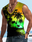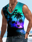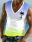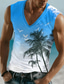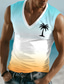 בגדי ריקוד גברים גראפי דקל קוקוס גופייה חולצה ללא שרוולים לגברים ללא שרוולים חולצה קצרה הדפסת תלת מימד צווארון עגול קצר חולצה חופשה טרופי מעצב יומי מפלגה חדר כושר לבן אביב קיץ ביגוד S M L XL 2XL 3XL