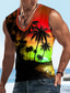 בגדי ריקוד גברים דקל קוקוס חולצה קצרה גופייה ללא שרוולים חולצה קצרה הדפסת תלת מימד צווארון עגול קצר חולצה חופשה קזו'אל הוואי חגים פול שחור צהוב קיץ אביב ביגוד S M L XL XXL XXXL