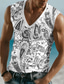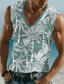 בגדי ריקוד גברים עליונית טנק גופייה גופיה חולצה ללא שרוולים ללא שרוולים צווארון עגול קצר קיץ עץ קוקוס אופנתי מעצב בסיסי דפוס חופשה רחוב ליציאה שחור לבן כחול בהיר חולצה עליונה לגברים