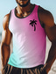 בגדי ריקוד גברים Ombre דקל קוקוס חולצה קצרה ללא שרוולים חולצה קצרה הדפסת תלת מימד צווארון V חולצה טרופי חוץ חופשה הוואי פול אודם סגול קיץ אביב ביגוד S M L XL XXL XXXL