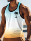 בגדי ריקוד גברים Ombre חולצה קצרה גופייה ללא שרוולים חולצה קצרה הדפסת תלת מימד צווארון עגול קצר חולצה חופשה טרופי קזו'אל מפלגה חגים פול קיץ אביב ביגוד S M L XL XXL XXXL