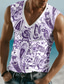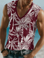 בגדי ריקוד גברים צמחים טרופי פרחים טרופיים חולצה קצרה ללא שרוולים חולצה קצרה הדפסת תלת מימד צווארון V חולצה טרופי חוץ חופשה הוואי פול לבן סגול קיץ אביב ביגוד S M L XL XXL XXXL