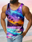 גופייה לגברים ללא שרוולים צווארון U קיץ גלקסי ערפילית הדפס מסביב עצי דקל טרופיים חוף שקיעה ירח גרפי אופנה קלאסי נוח רחוב קז'ואל ספורטיבי לגברים