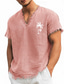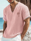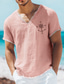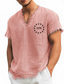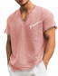 חולצת טי לגברים עם צווארון וי ופשתן מתערובת כותנה ופשתן, הדפס עץ דקל, קצה גולמי, ורוד מאובק, קיץ לחופשת חוף, חולצה רכה ומרופטת, חולצה של מעצב אופנה, s-3xl