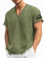 חולצת טי לגברים עם צווארון וי ופשתן בצבע פשתן וכותנה, שוליים גולמיים, ירוק צבא, קיץ, קז'ואל, חוף, חולצה רכה, אופנתית, s-3xl