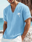 חולצת טי לגברים עם שרוולים קצרים, סריג וופל בצבע תכלת, עם צווארון V, גרפי וגימור משובץ, קז'ואל, חופשת קיץ, בגדי מעצבים, ביגוד, S M L XL XXL XXL
