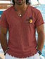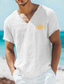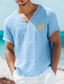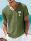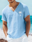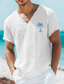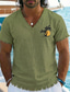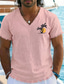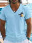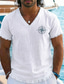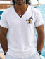 חולצת טי לגברים בסגנון בוהו טרופי עם צווארון V, צווארון V, כותנה ופשתן, גזרה רחבה, חופשת חוף, שייט בסירה, בגדי מעצבים, ביגוד, S M L XL XXL XXL