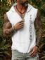 גופייה ללא שרוולים עם קפוצ'ון לגברים בסגנון בוהו טרופי בסגנון חוף, כותנה, פשתן, שוליים גולמיים, גזרה רחבה, חוף, חופשת קיץ, שייט, בגדי מעצבים, ביגוד, S M L XL XXL XXL