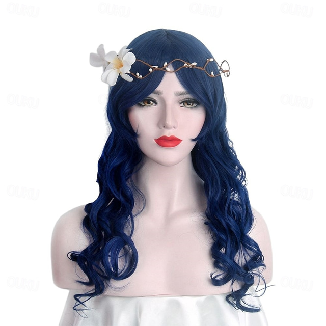 פאות קוספליי כחול מתולתל שיער סינטטי בינוני פאות בגדי ריקוד נשים פאות למסיבה
