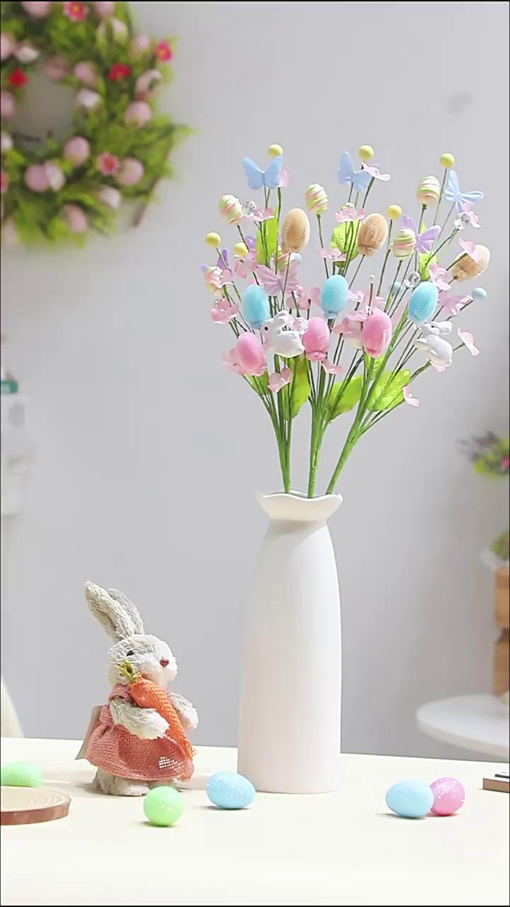 קישוט פסחא ביצת ארנבת מלאכותית ענף פרחי ביצי קצף צבעוניות ענפים זרי חג המולד למסיבת פסחא עיצוב הבית