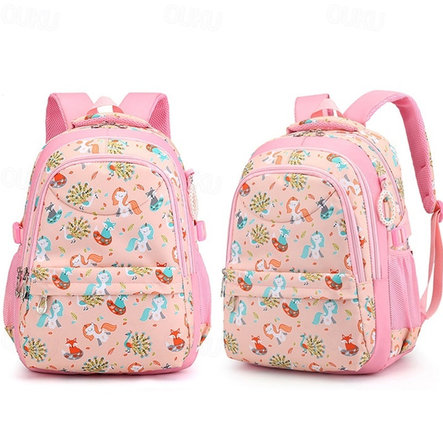 ילדים בנים בנות תרמיל תיק לבית הספר תרמיל פונקציונלי תיק ספרים לתרמיל בית ספר בית הספר ניילון מתכווננת קיבולת גבוהה קל משקל רוכסן הדפס ורוד מסמיק סגול