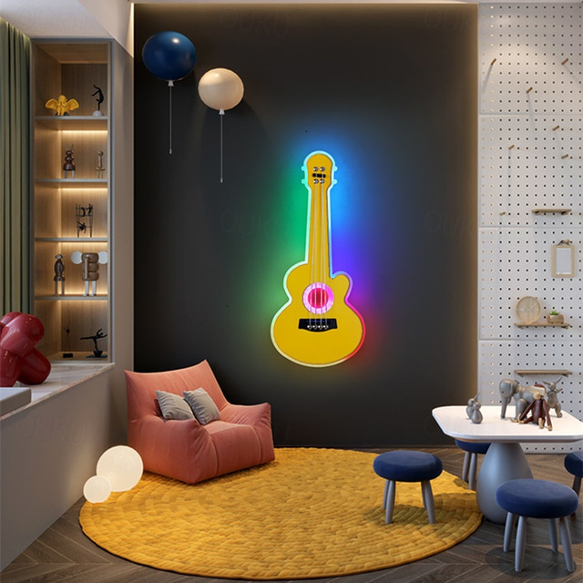 [עיצוב וסגנון:] העיצוב השטוח של גוף התאורה הזה שואב השראה מצורת גיטרה, עם השפעות אמנותיות ומודרניות. הוא כולל עיצוב עגלגל עם גימור צבעוני הכולל גוונים מזהב לבן ועליזים. הצללית של הגיטרה מוסיפה קסם מוסיקלי ומיוחד, מה שהופך אותו לא רק למקור אור אלא גם לפריט שיחה.