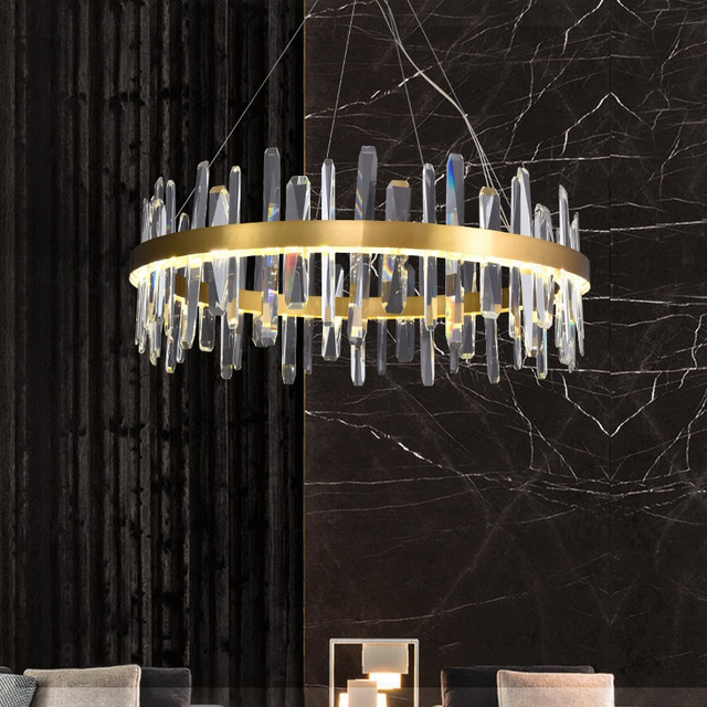 [בדים] זרקורים יוקרתיים אלה מעוצבים עם מסגרת מתכתית שעברה ציפוי אלקטרוליטי בעיצוב זהב עשיר, מה שמספק מבנה חזק וחיצוניות זוהרת. המסגרת מעוטרת בפריזמות קריסטל חתוכות באופן מדויק, התורמות למראה המבריק שלה. [סגנון] המאפיין את המנורה התלויה הזו הוא העיצוב המודרני בצורת מנורה, המציגה סילואט עגול שהוא גם עכשווי וגם נצחי. השילוב של גימורים מתכתיים חלקים עם קריסטלים sparkling מעניק לה אסתטיקה מתוחכמת המעלה כל עיצוב פנים. [דגשים בעיצוב] התכונה הבולטת של מנורת התקרה הזו היא הסידור הזוהר של פריזמות הקריסטל החתוכות באופן אינדיבידואלי. הפריזמות הללו קולטות ומחזירות את האור בצורה יפה, תוך יצירת תצוגה מסחררת של צבעים משולבים. המנורה כוללת גם שרשרת או כבל מתכוונן, המאפשרים אפשרויות התקנה מגוונות. [הזדמנויות] מתאים באופן אידיאלי למגוון רב של סביבות, מנורה זו מושלמת להאיר חללים גדולים כמו חדרי מגורים, אזורי אוכל או חדרי שינה. העיצוב המרשים שלה הופך אותה לבחירה מצוינת עבור חדרי אוכל רשמיים או כפריט מרכזי בכל סביבה אלגנטית, מדגיש את העיצוב של החדר ויוצר אווירה חמימה ומזמינה. [גודל] זמינה בשני גדלים, 60 סנטימטרים (23.6 אינצ'ים) ו-80 סנטימטרים (31.2 אינצ'ים), מנורה זו נועדה להתאים לחדרים בגודל שבין 10 ל-15 מטרים רבועים. היא פועלת בטווח מתח של 220-240V, ותוכננה לפעול בצורה חלקה גם במגוון מוגבל של חללים מגורים וגם מסחריים.