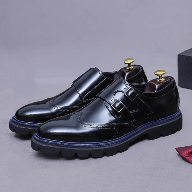 נעלי ערב לגברים עם רצועות נזיר כפולות, 100% עור פרימיום, סגנון קלאסי ואלגנטי, מושלם למשרד, חתונות ואירועי ערב