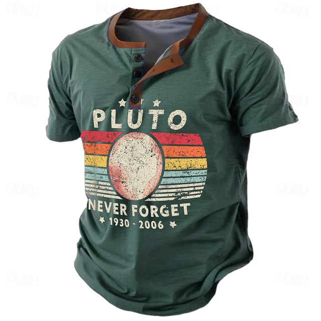 חולצת גרפיקה קצרה לגברים עם הדפס של פלוטו 'לעולם לא נשכח 1930-2006' נוסטלגיה