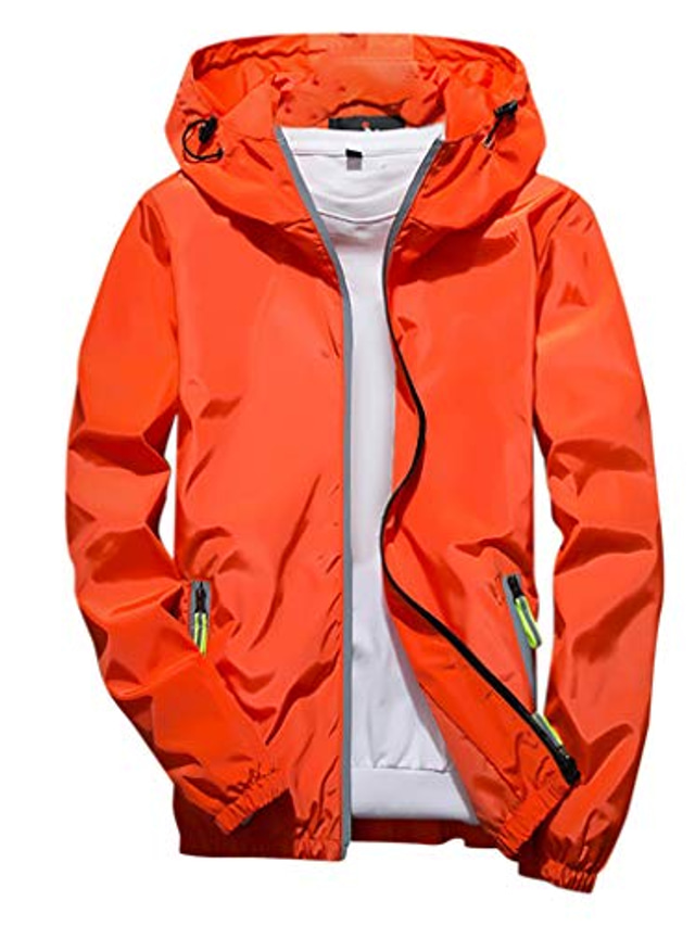 בגדי ריקוד גברים ז'קט קל משקל מעיל חיצוני מעיל קיץ מעיל קפוצ'ון בָּחוּץ ספורט פנאי מחזיר אור אנטי-UV עם קפוצ'ון קיץ אביב צבע אחיד קלסי נייבי שחור לבן אודם כתום Jackets