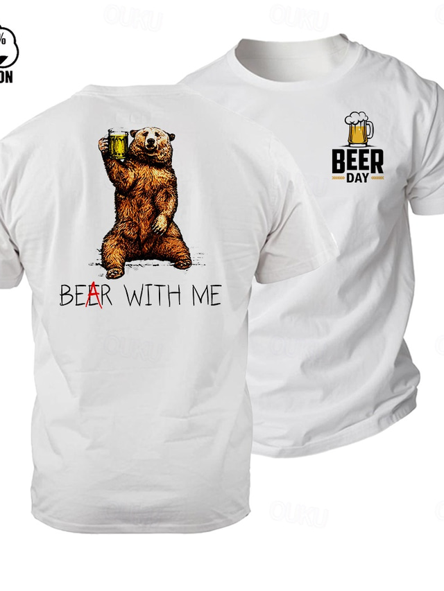 חולצת טי הומוריסטית לגברים 'צריך לחכות לי' משחק מילים עם בירה עם שרוול קצר