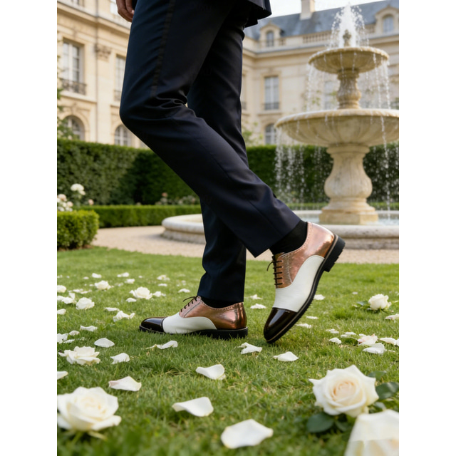 נעלי שמלה דו-גוניות לגברים בברונזה ושמנת עם עיצוב שרוכים, כובע אצבע מסוגנן לאירועים רשמיים אלגנטיים