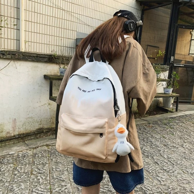 תרמיל גב אסתטי עם גרדיאנט לנערות מתבגרות - תיק בית ספר קל משקל עם מחזיק מפתחות ברווז חמוד, תיק גב בצבע פסטל רך לחזרה לבית הספר או לשימוש יומיומי