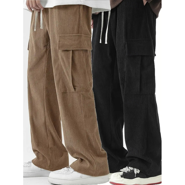 רב חבילות 2 יחידות בגדי ריקוד גברים שחור + חום מכנסי טרנינג מכנסי קורדרוי מכנסיים שרוך אלסטית מותניים אחיד חופשה לבוש יומיומי פוליאסטר אביב