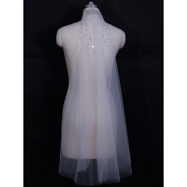 כיסוי כלה מודרני עם שכבה אחת כיסוי קתדרלה עם קריסטלים אבני חן טול