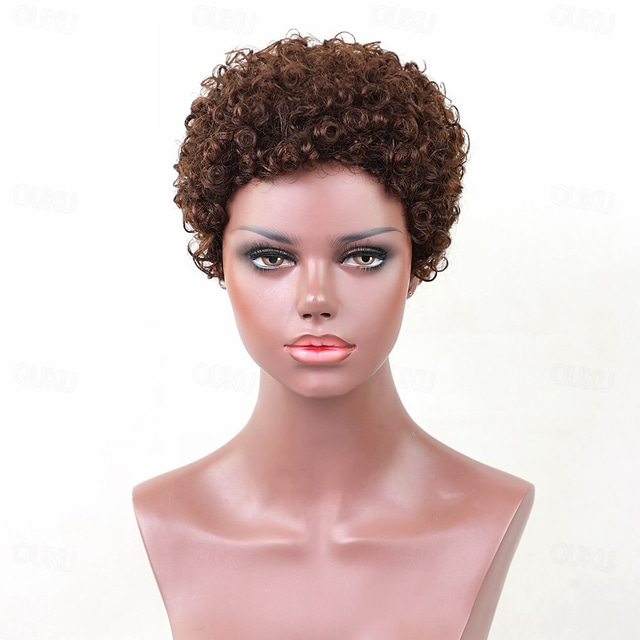 תערובת שיער אנושי פאה אפרו קינקי פיקסי קאט הוכן באמצעות מכונה שחור חום בינוני יין כהה יומי