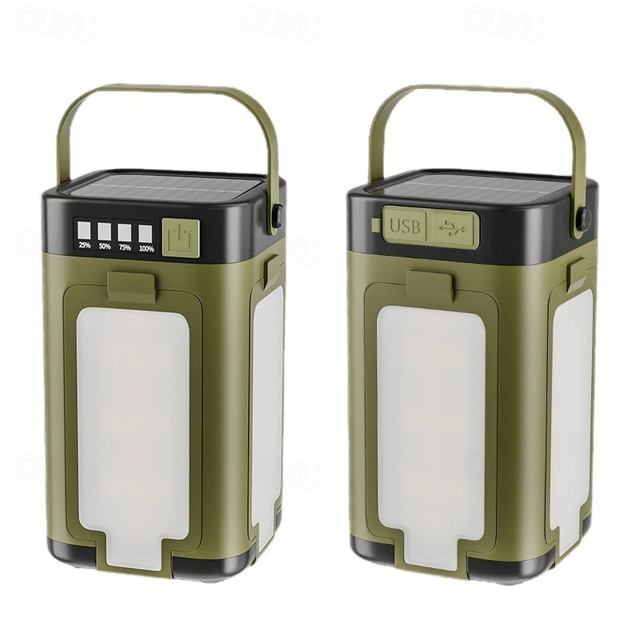 פנס קמפינג סולארי נייד לד עמיד למים IP4 נטענת עם טעינה סולארית של 2000mah &פנס LED עם חיווי חשמל ו-6 מצבים, פנס נייד, אורות אוהל לקמפינג וטיולים