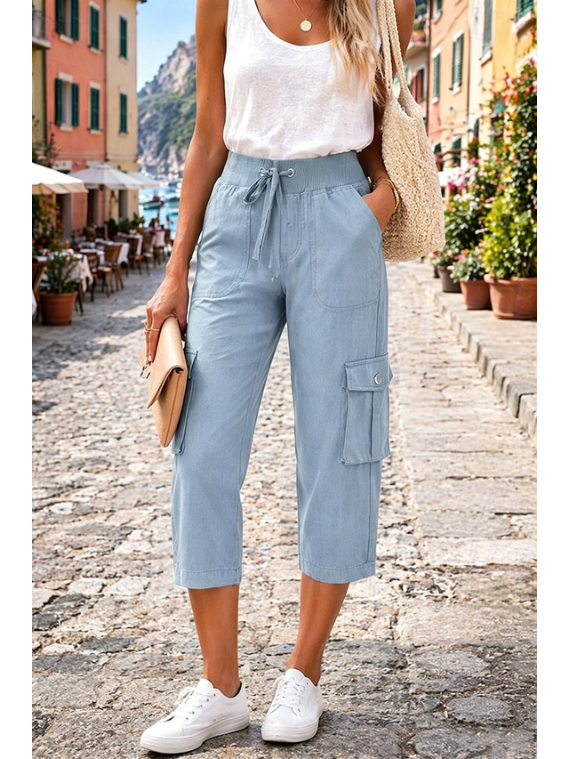 בגדי ריקוד נשים כותנה מכנס שלושת רבעי מכנסי קרגו מִכְנָסַיִים חופשה סגנון רחוב בסיסי אורך עגל טבעי אחיד כיס עיצוב שרוך אלסטי נוח קומפורט חוץ קשיח יומי חופשה חגים אפור בהיר ירוק צבאי חום בהיר שחור