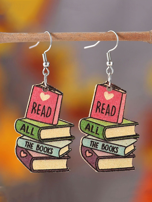 עגילי ערימת ספרים צבעוניים לנשים - תכשיטי תליון מעץ קלים למורים, תלמידים, חובבי ספרים - כיף חזרה לבית הספר או מתנת סיום