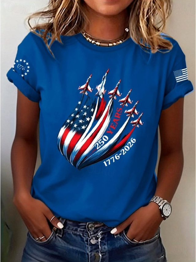 יום העצמאות האמריקאי בגדי ריקוד נשים חולצה קצרה דפוס גראפי דגל אותיות וינטאג' מסוגנן קלסי שרוולים קצרים צווארון עגול קצר חולצות רגילות יומי פול אפר שחור לבן קיץ אביב