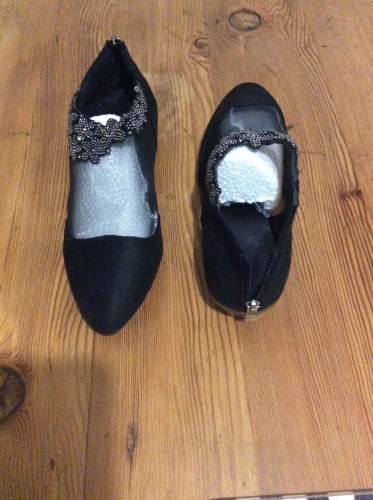נעל נחה עקב נמוך. הנעל מבד דמוי עור. נעל נחה עקב נמוך. הנעל מבד דמוי עור.