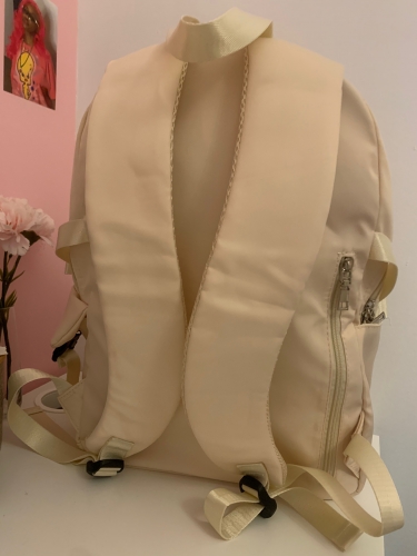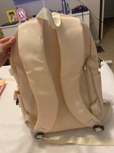 The backpack is nice, I havent fully put used to it but it has many pockets, ts comfortable, and cute. The backpack is nice, I havent fully put used to it but it has many pockets, ts comfortable, and cute.