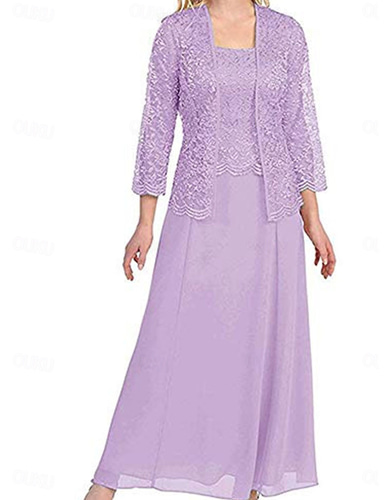 Ruha szettek anyának a menyasszony ruhája elegáns egyszerű négyzet nyakú földig érő poliészter hosszú ujjú egyszínű