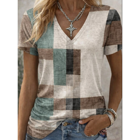 Női Póló Nyomtatott Mértani Stílusos Alkalmi Rövid ujjú V-alakú Normál felsők Napi Poros kék Nyár