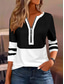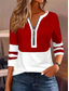 Női póló Hosszú ujjú Grafikás Színblokkok Csíkos Elegáns Vintage Stílusos Hosszú ujjú V nyakú Rendszeres Felsők Napi Hétvégi Cipzáras Nyomtatás Fekete Piros Királykék Tavaszi Őszi Előősz