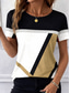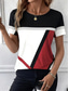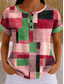 Női Waffle textúrájú kötött felsők T-shirt színes blokk nyomtatás grafika geometriai stílusos klasszikus rövid ujjú kerek nyakú Henley normál felsők napi sportra világosbarna szivárványpiros/kék nyár
