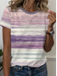 női póló alkalmi csíkos mintás rövid ujjú normál felsők nyakú, napi rózsaszín kék lila nyár