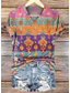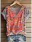Női Póló Nyomtatott Virágos Grafika Mértani Szüret Stílusos Alkalmi Rövid ujjú V-alakú Normál felsők Napi Hétvége Medence Rubin Narancssárga Nyár Tavasz
