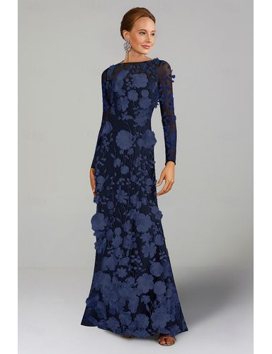 Fekete Virágos Hímzett Applikás Tengerparti Esküvői Vendég Ruhák Formális Fél-formális Ujjatlan Oszlop Kerek Nyakú Hosszú Ujjú Padlóhosszú Tüll Menyasszonyi Ruhák