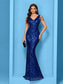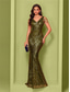 Harang fazon Földig érő Estélyi ruhák Elegáns Ujjatlan V-alakú Diákbál Estély Flitteres val vel Flitter