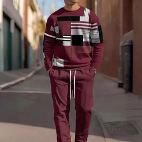 Férfi Grafika Színes 2db 3D pulóver készletek Tracksuit Hosszú ujj Hosszú nadrág Terített nyak Utcai sikk Sportruházat Alap Sport & Szabadtéri Hétköznapi Sport Nyomtatott Tavasz Ősz Fekete Rubin