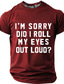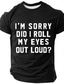 Bocsánat, hangosan forgattam a szemem, férfi vicces, szarkasztikus, azonosulni tudó humorú póló, grafikus, kerek nyakú, rövid ujjú, irodai vicc, ajándék munkatársnak, designer ruházat